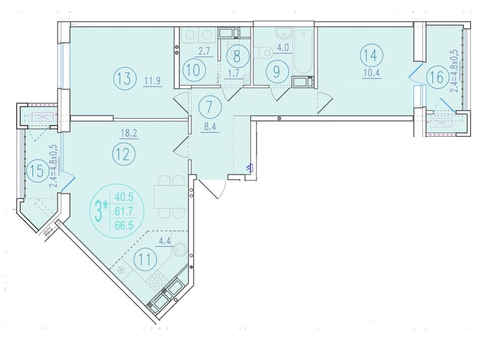 | 3-комн. | 61 - 67 м² | 11,4 - 12,4 млн ₽ |