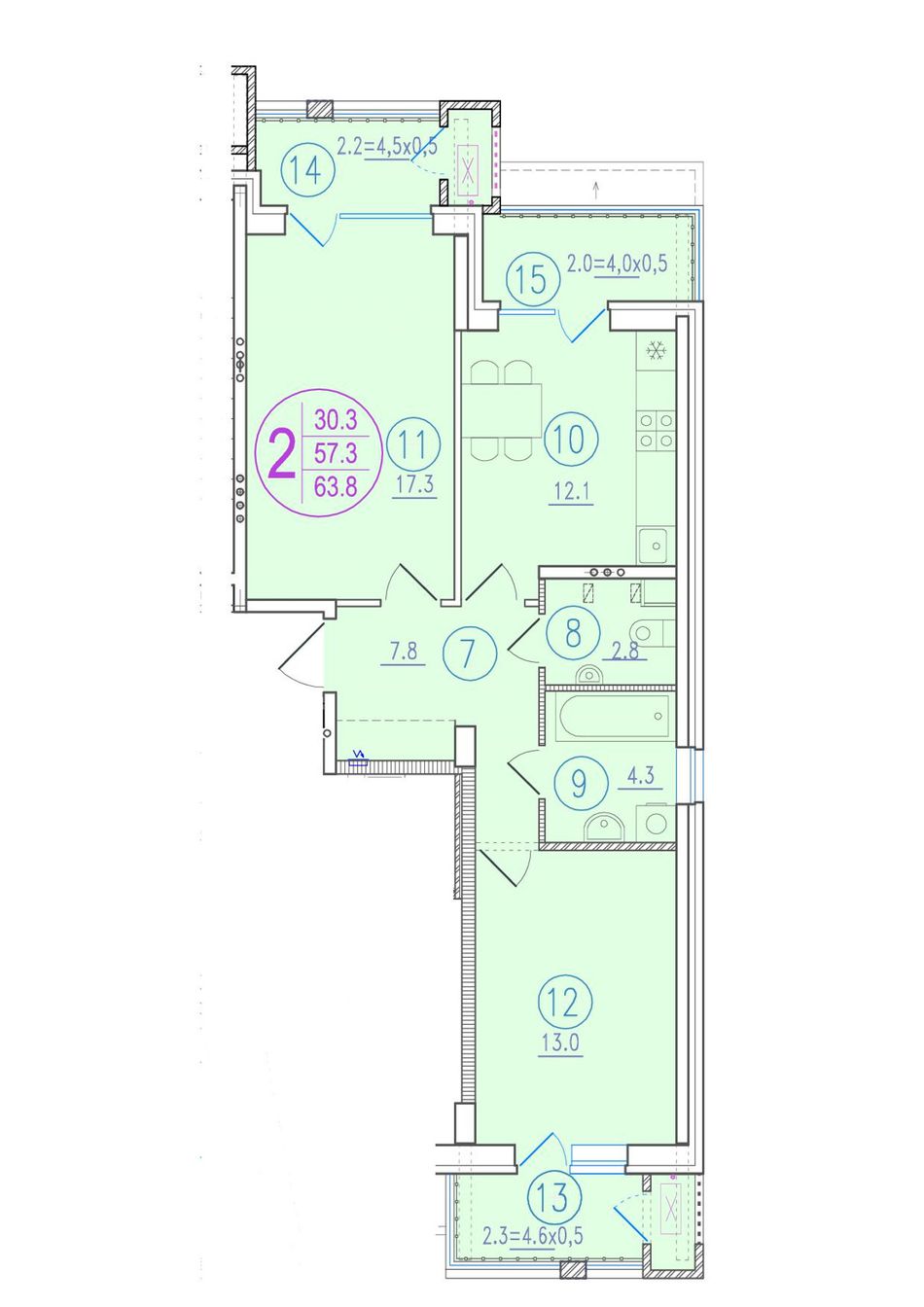 Общая площадь63,8 м²