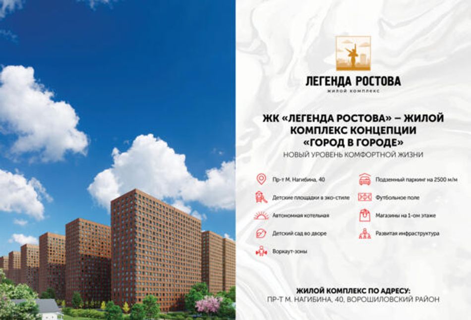 Грандиозный ЖК «Легенда Ростова» - новый жилой комплекс с концепцией «город в городе» со своим детским садом на территории и подземным паркингом.