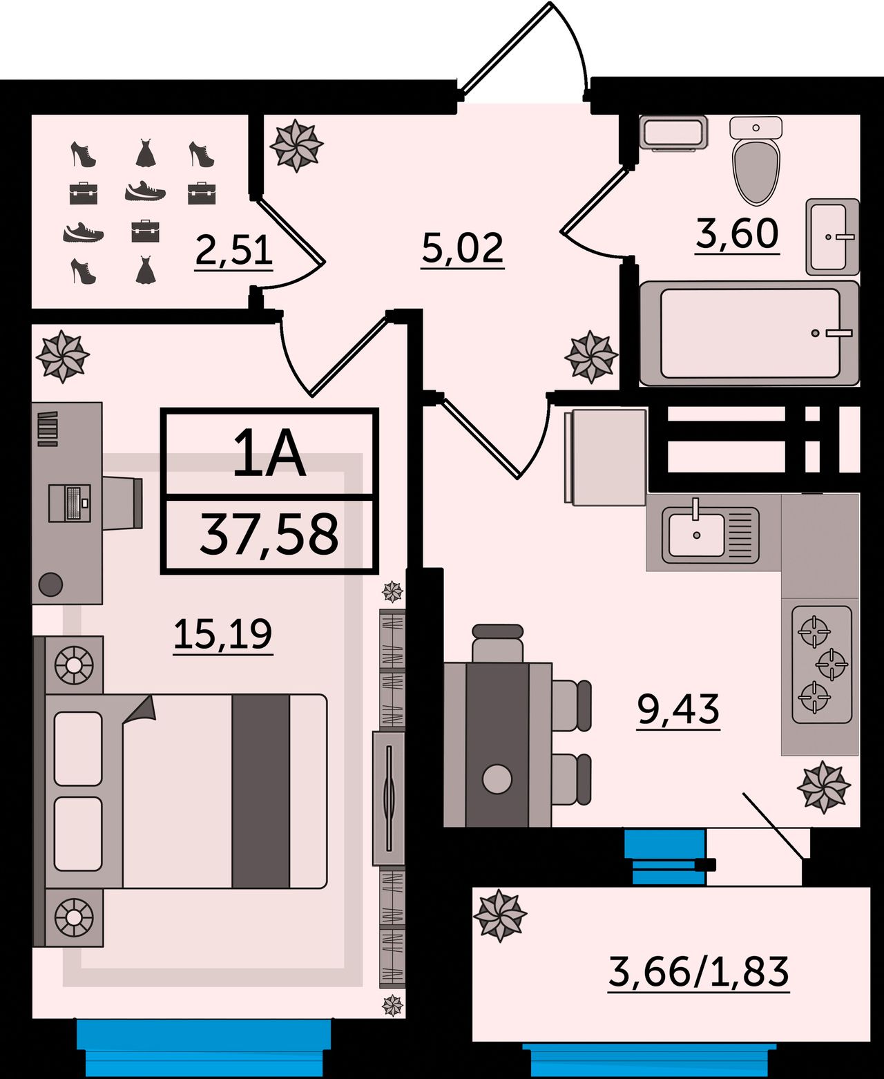 1-комнатная — 37,58 м² 18/23 эт. в Легенда Ростова