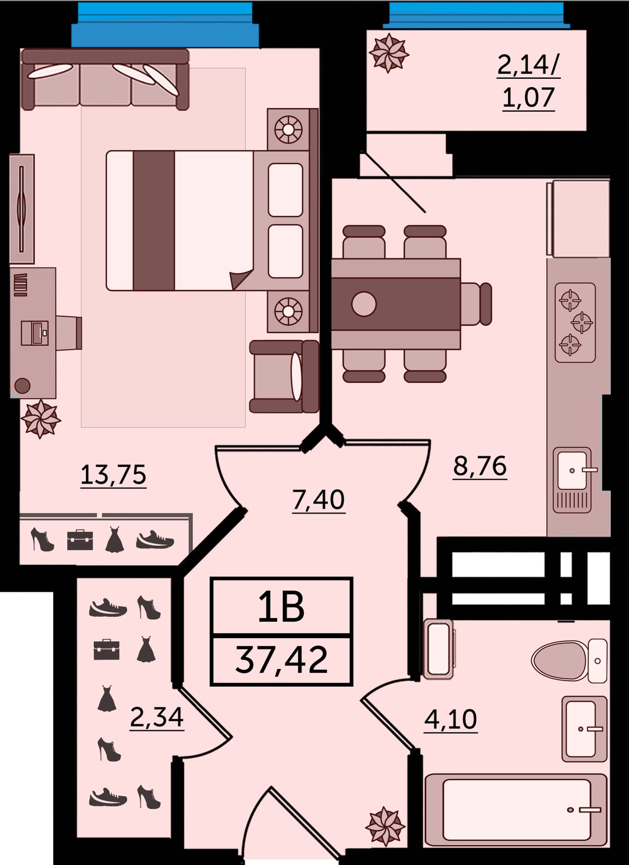 | 1-комн. | 39 - 42 м² | 4,2 - 6,4 млн ₽ |