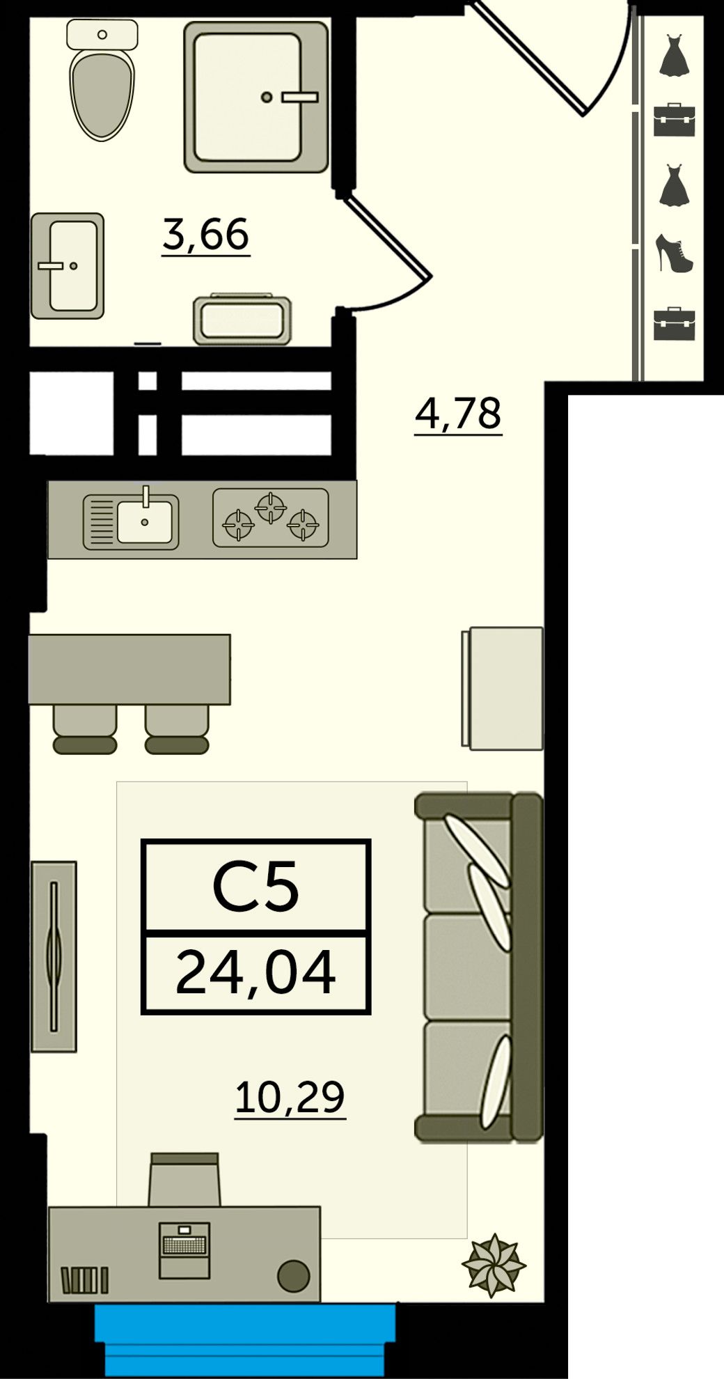 | Студия | 24 - 29 м² | 4,2 - 5,1 млн ₽ |