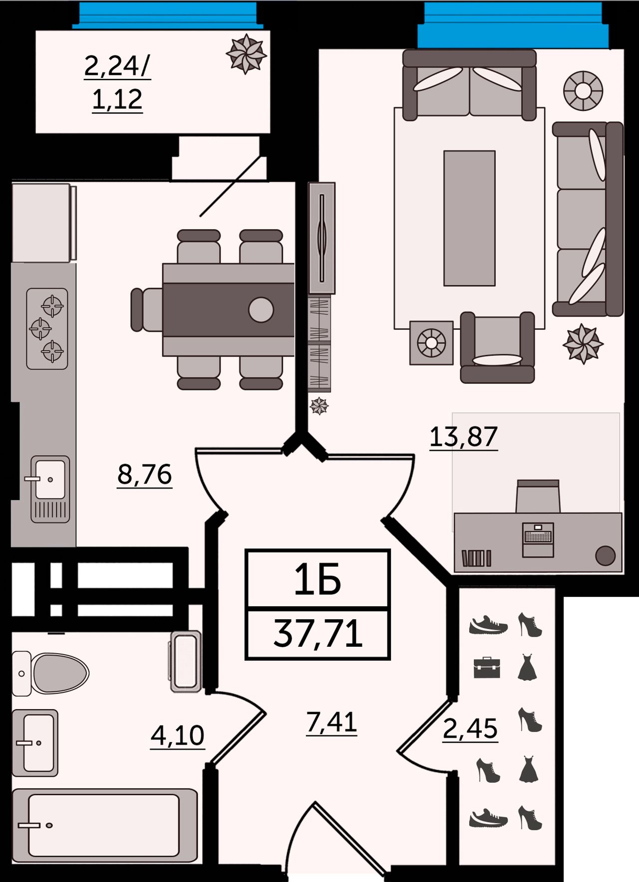 1-комнатная — 37,71 м² 15/23 эт. в Легенда Ростова