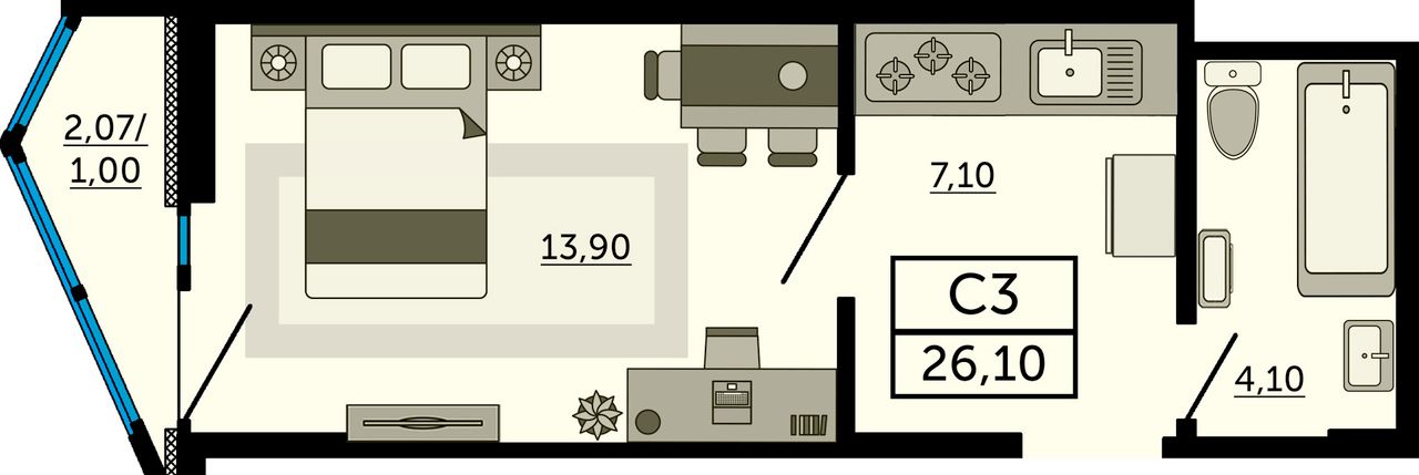 Студия | 28 - 30 м² | 4,3 - 4,7 млн ₽ |