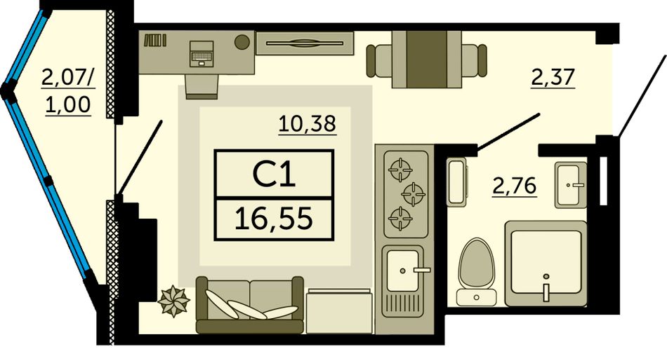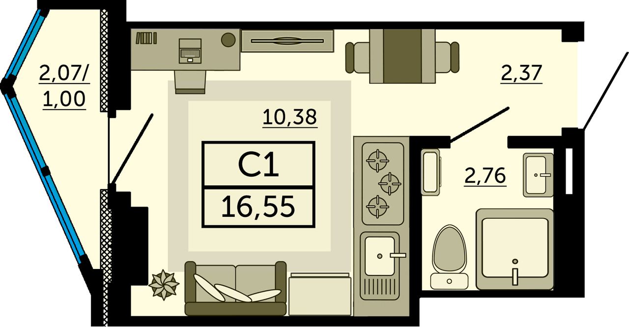 | Студия | 24 - 29 м² | 4,2 - 5,1 млн ₽ |