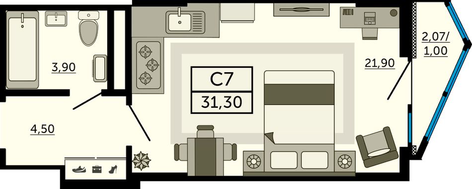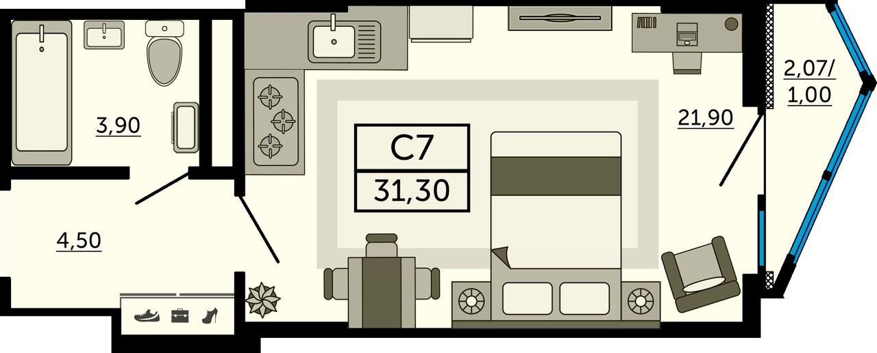 | Студия | 25 - 32 м² | 3,9 - 4,6 млн ₽ |