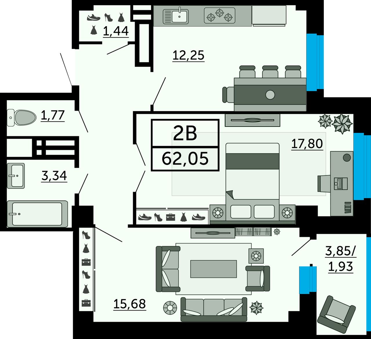 Общая площадь62,5 м²
