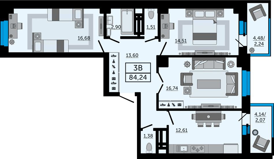 3-комнатная — 84,24 м² 14/25 эт. в Four Premiers (Фор Премьерс)