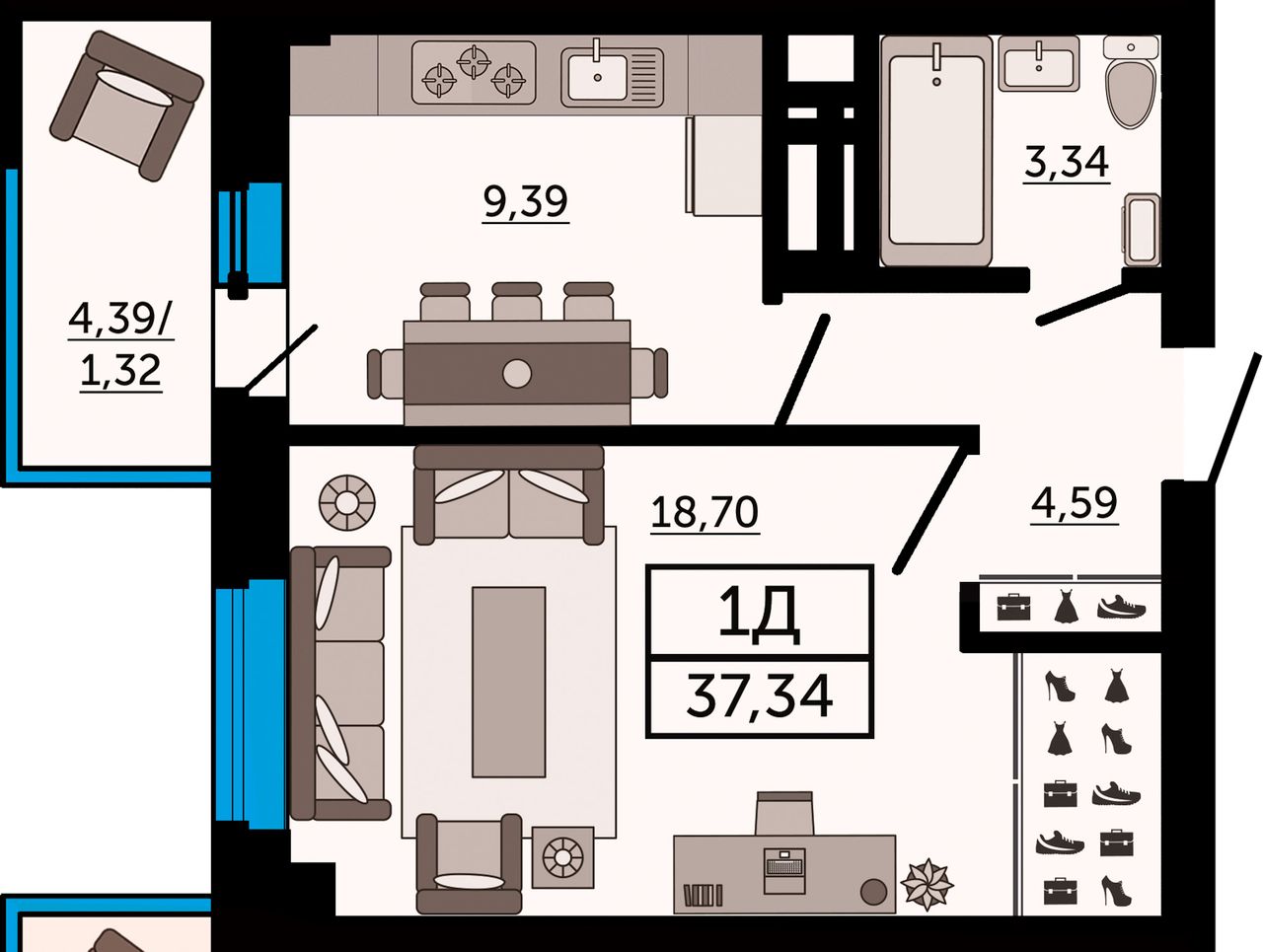 | 1-комн. | 39 - 42 м² | 4,2 - 6,4 млн ₽ |