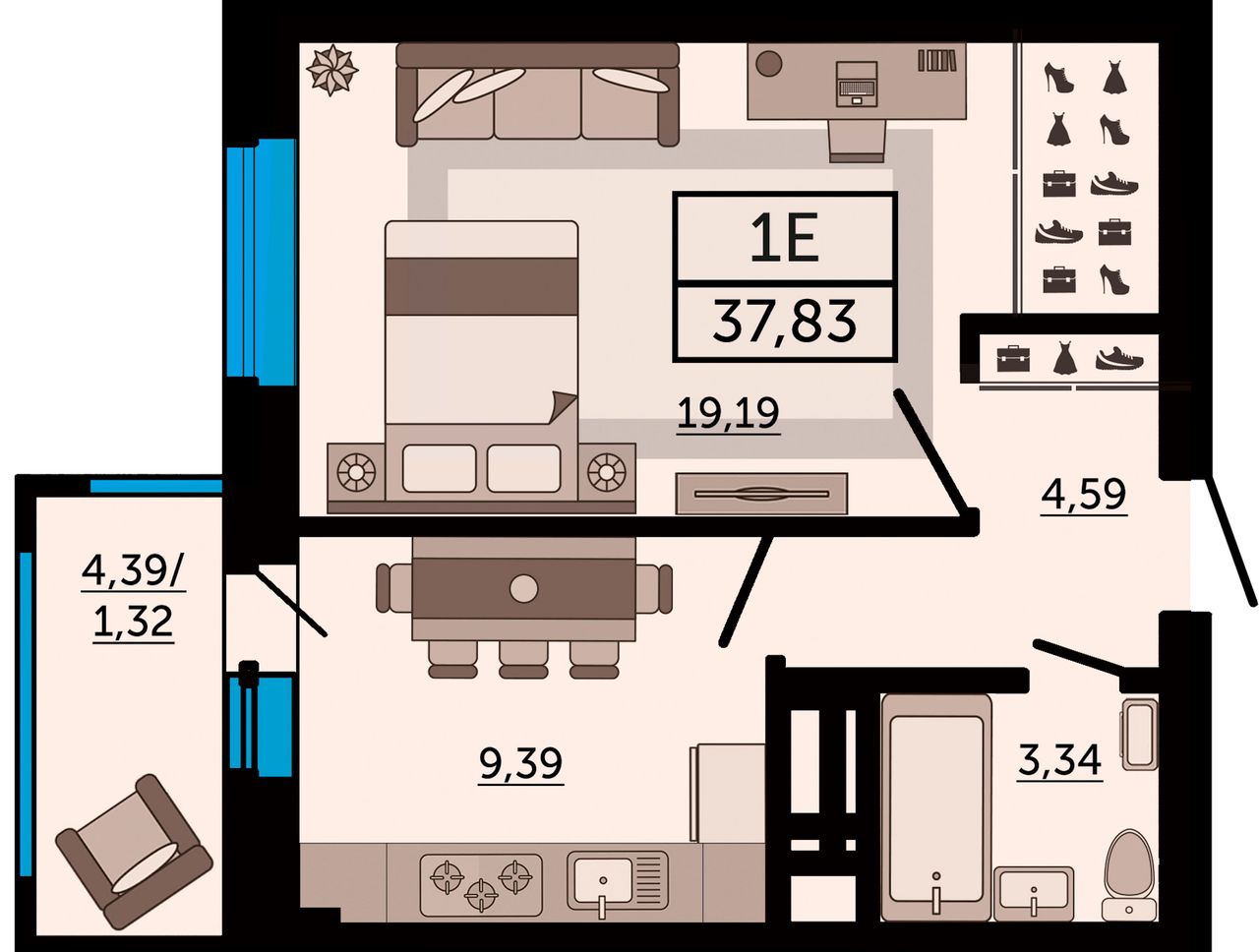 Общая площадь37,83 м²