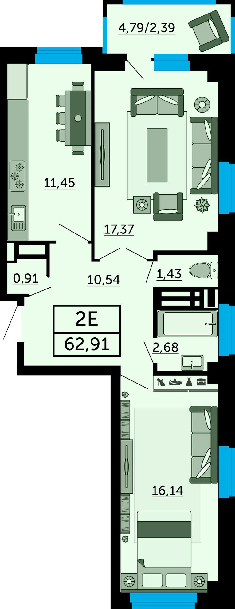 | Студия | 32 м² | 5,1 млн ₽ |