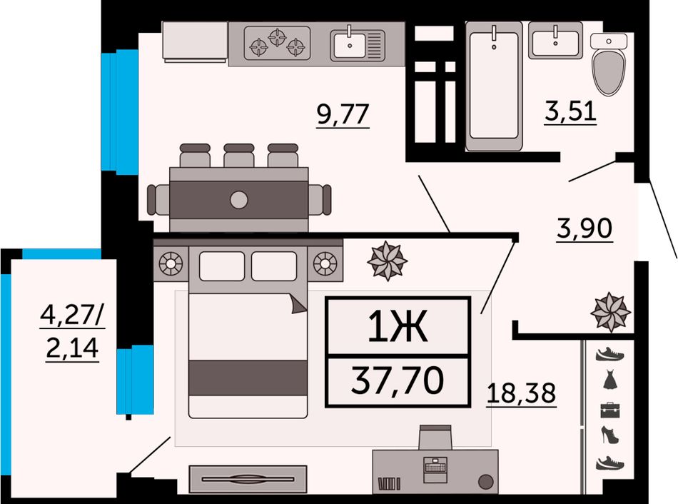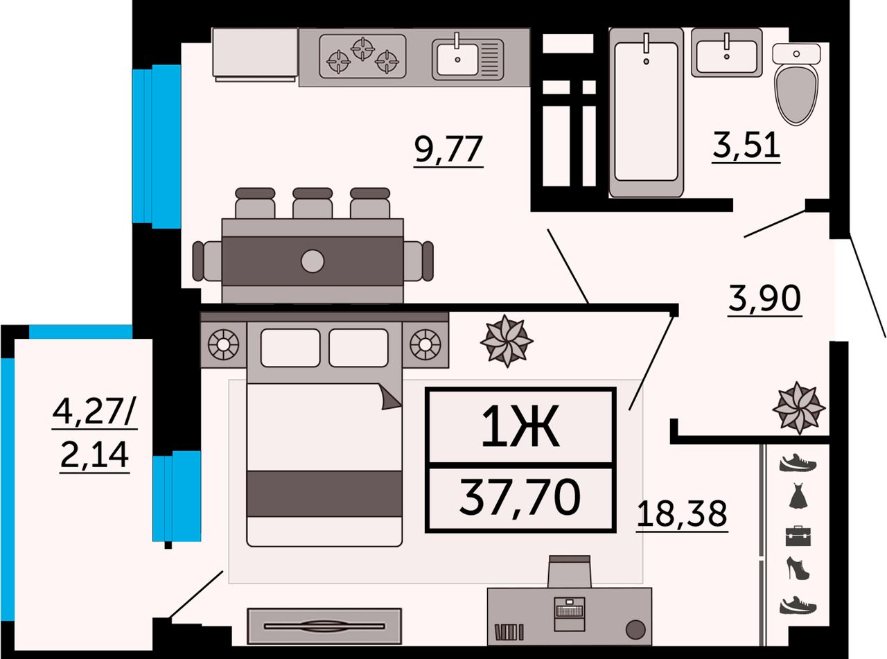 | 1-комн. | 35 - 38 м² | 4,7 - 5,3 млн ₽ |