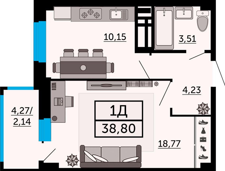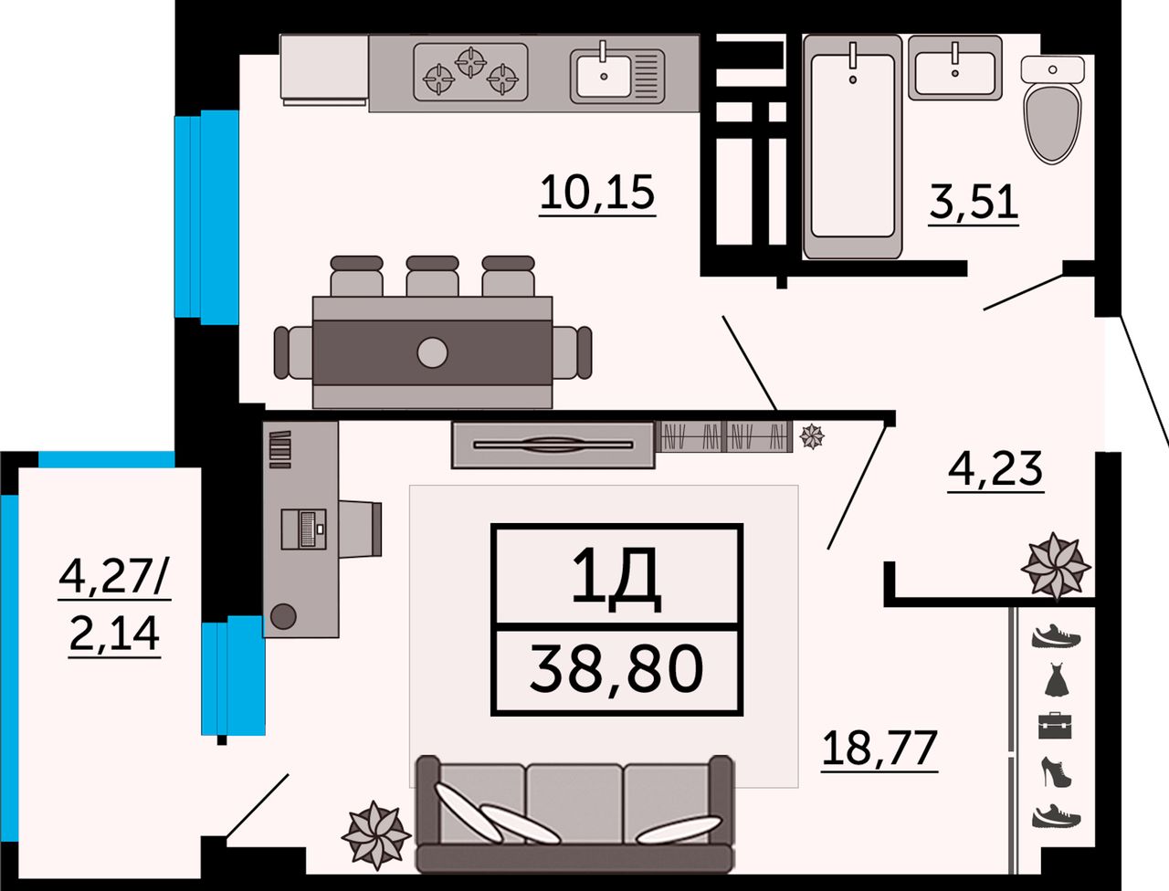 | 1-комн. | 35 - 38 м² | 4,7 - 5,3 млн ₽ |