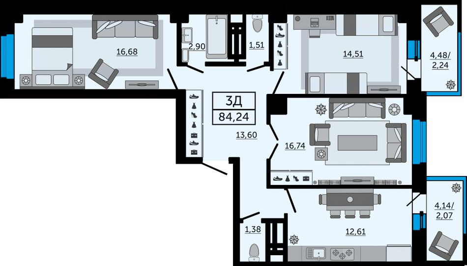 Общая площадь84,24 м²