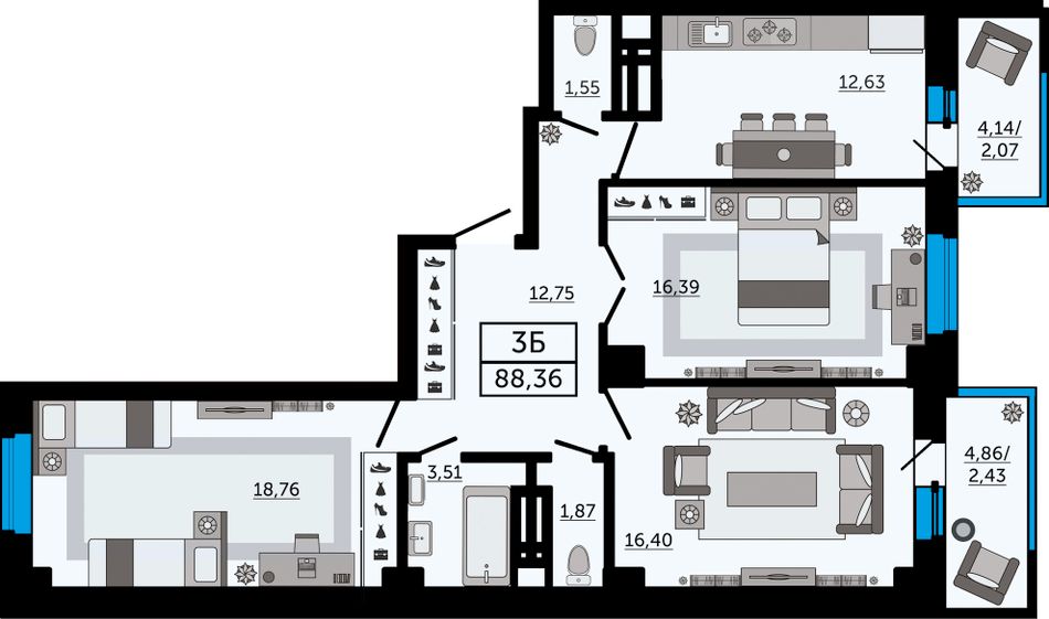 3-комнатная — 88,36 м² 9/25 эт. в Four Premiers (Фор Премьерс)
