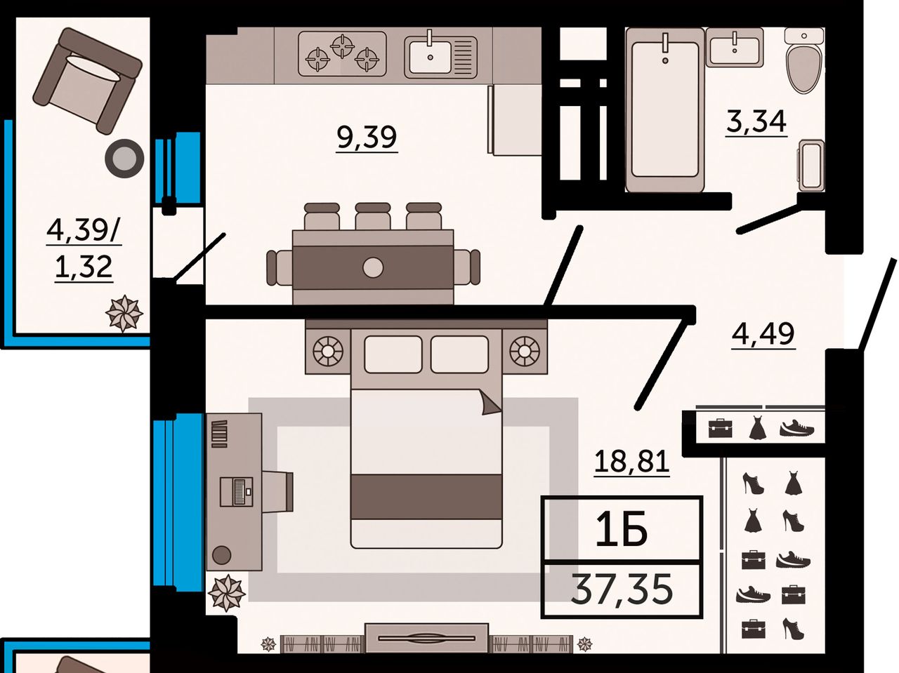1-комнатная — 37,35 м² 20/25 эт. в Four Premiers (Фор Премьерс)