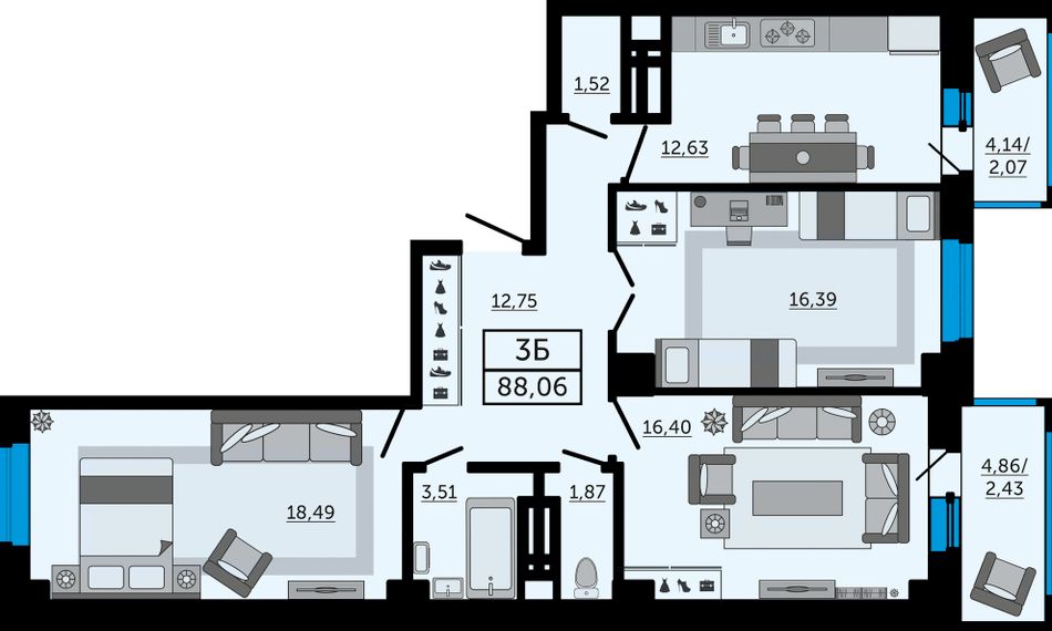 Общая площадь88,06 м²