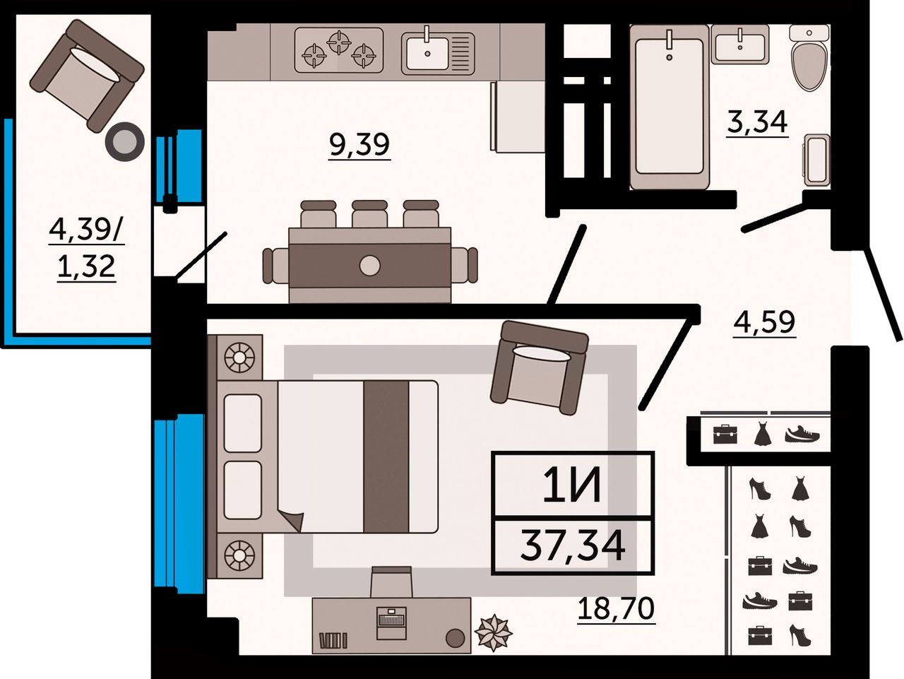 | 1-комн. | 39 - 42 м² | 4,2 - 6,4 млн ₽ |
