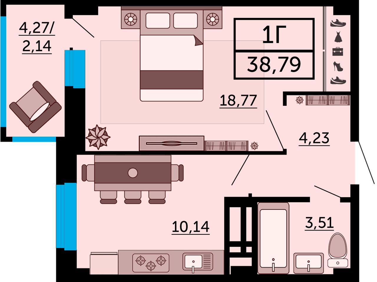 Жилая площадь18,77 м²