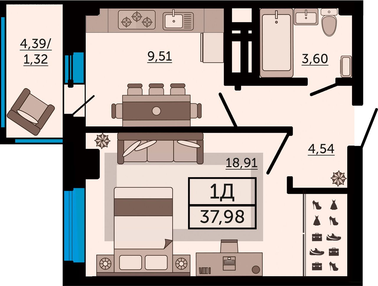 Общая площадь37,98 м²