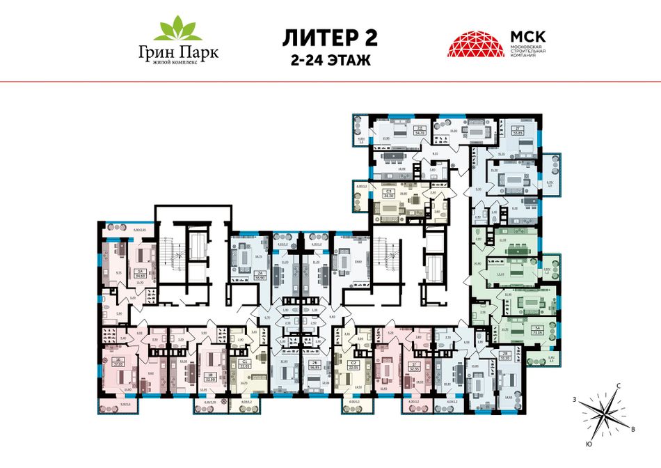 1-комнатная — 33,4 м² 24/24 эт. в Грин Парк