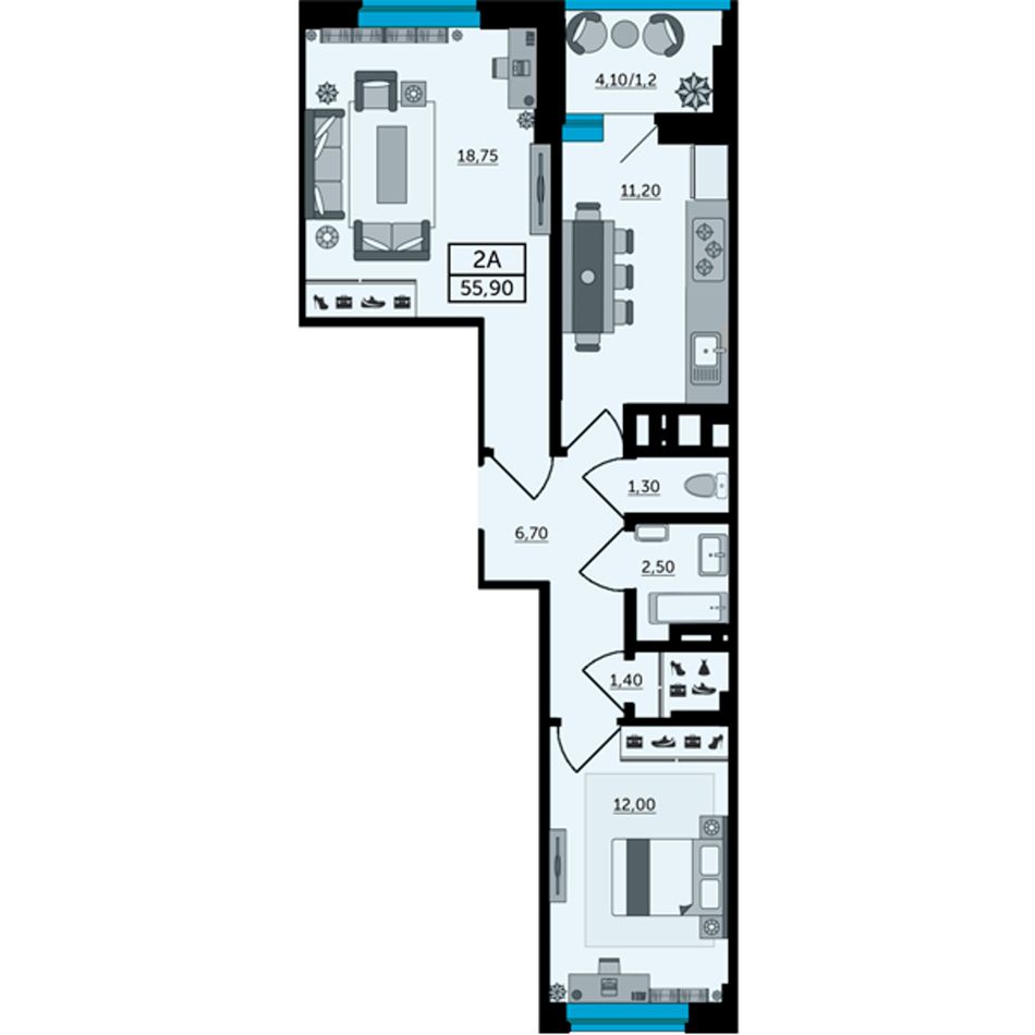2-комн. | 58 - 116 м² | 7,2 - 12,8 млн ₽ |