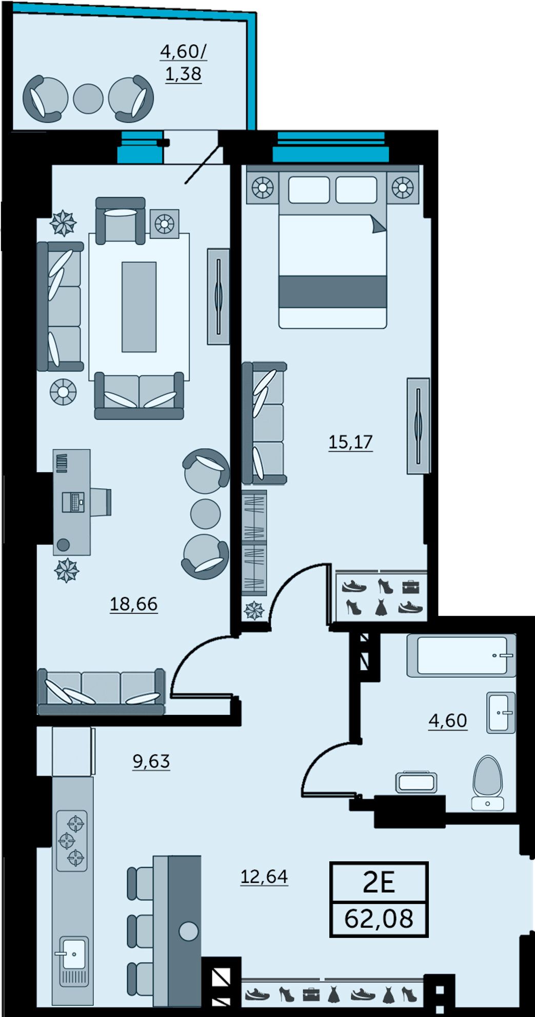2-комнатная — 63,1 м² 23/25 эт. в Сердце Ростова 2