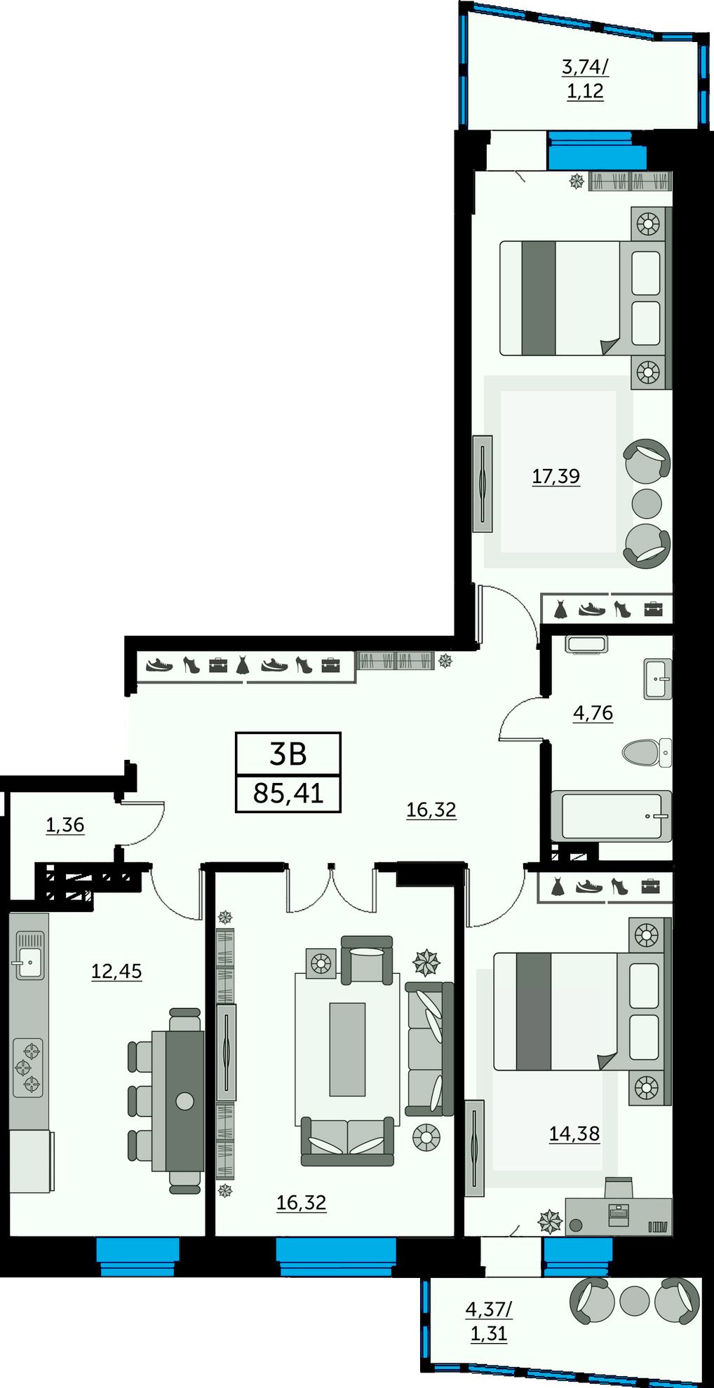 3-комн. | 68 - 76 м² | 12,5 - 13,3 млн ₽ |