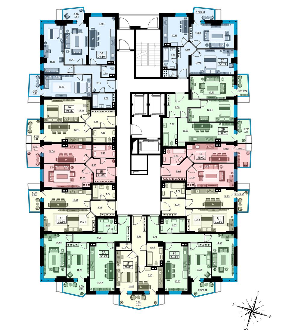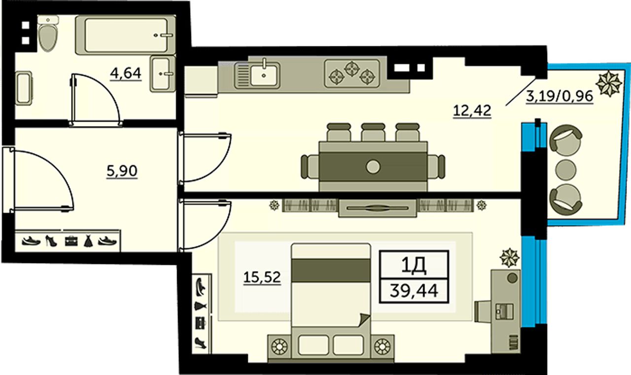 | 1-комн. | 39 - 43 м² | 6,2 - 6,7 млн ₽ |