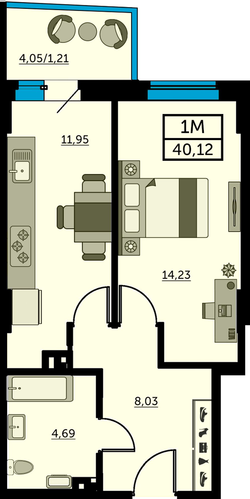 1-комн. | 39 - 43 м² | 5,7 - 6,3 млн ₽ |
