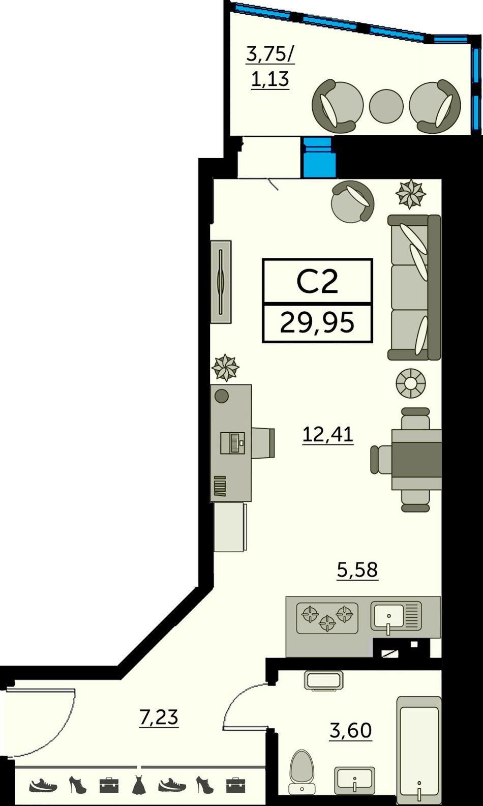 Студия — 31,7 м² 2/12 эт. в Сердце Ростова 2