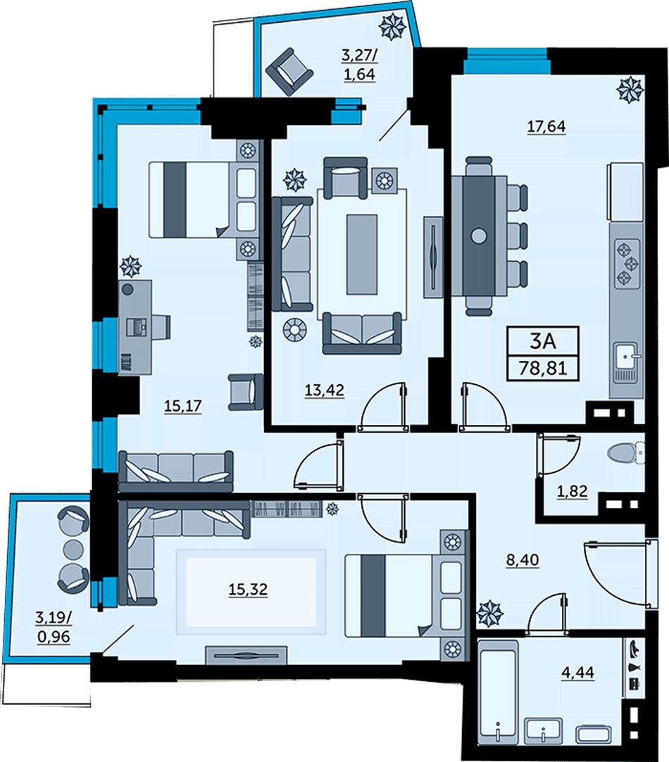 3-комн. | 68 - 76 м² | 12,5 - 13,3 млн ₽ |