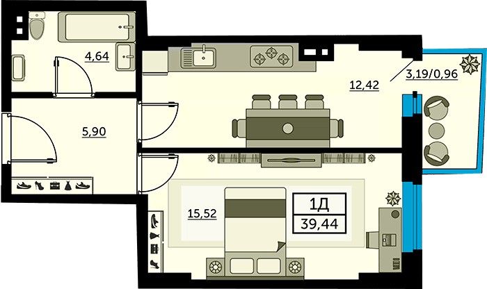 1-комн. | 39 - 43 м² | 5,7 - 6,3 млн ₽ |