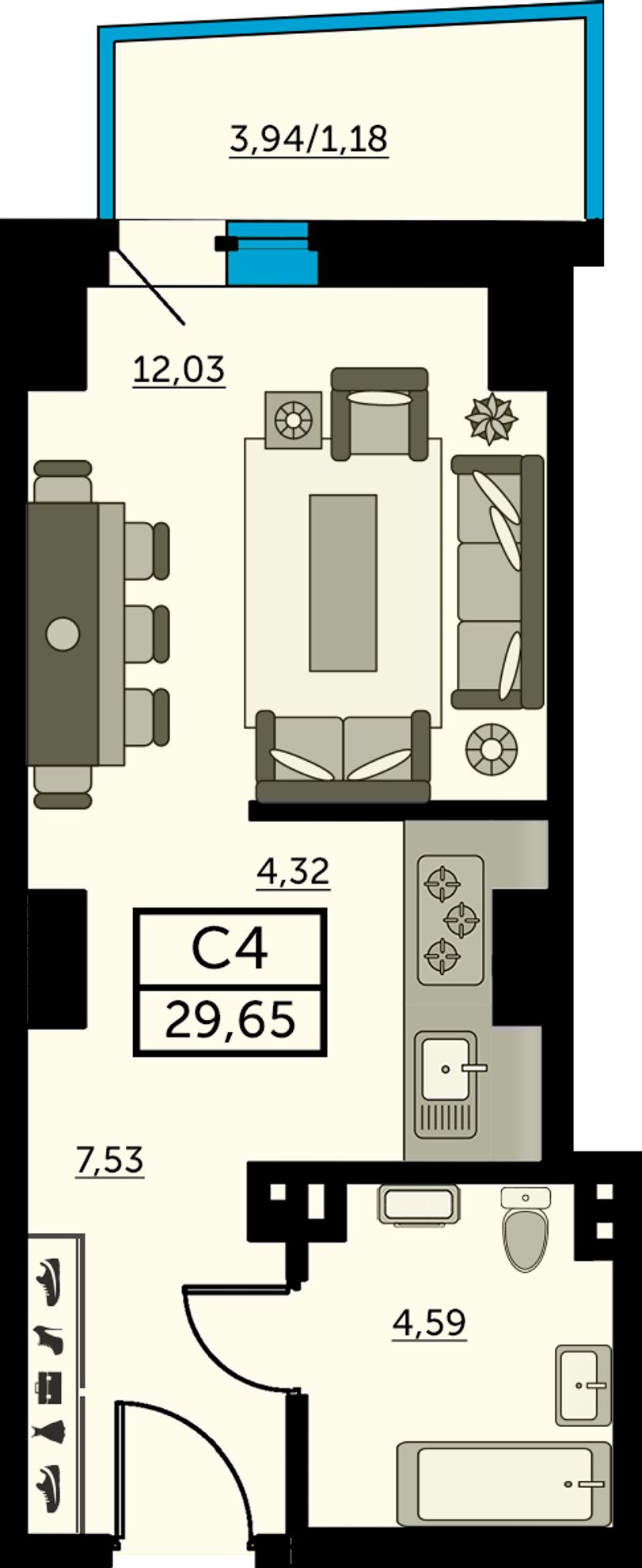 Студия | 28 - 30 м² | 4,3 - 4,7 млн ₽ |