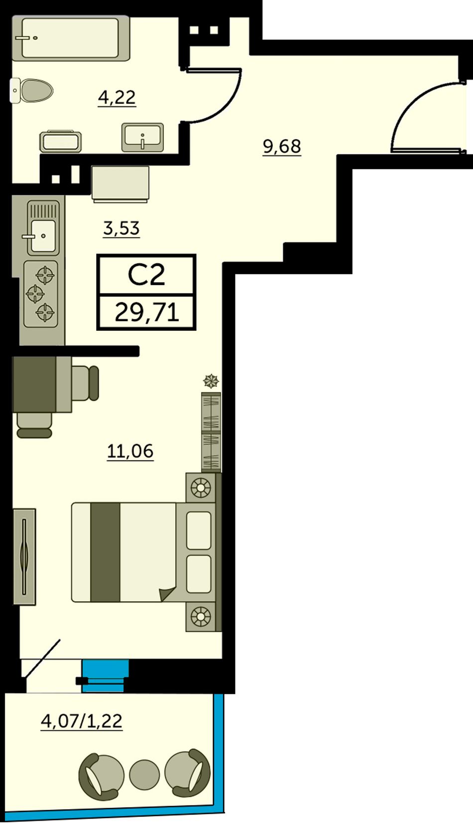 Студия | 28 - 30 м² | 4,3 - 4,7 млн ₽ |