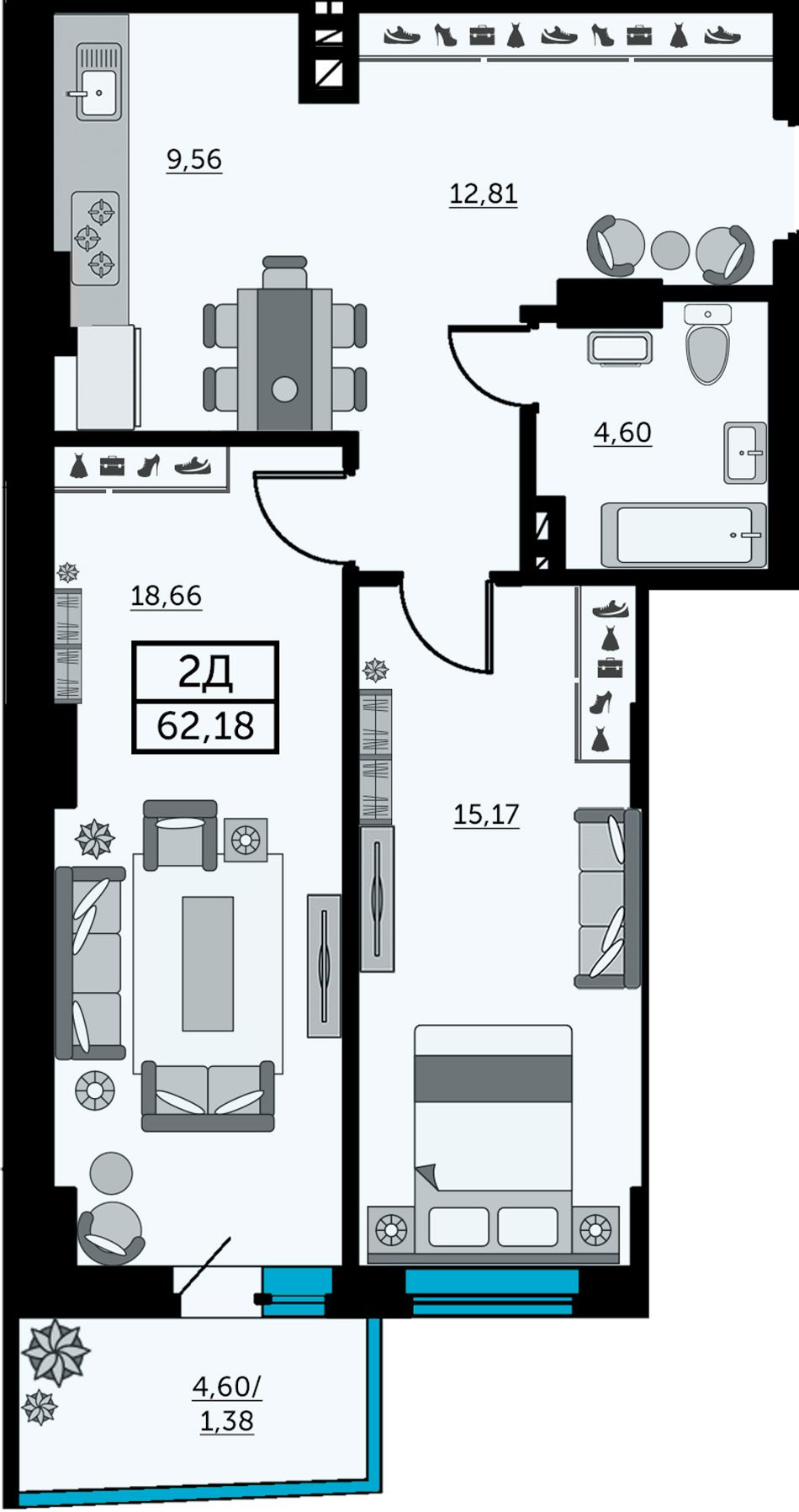 2-комнатная — 62,2 м² 17/25 эт. в Сердце Ростова 2
