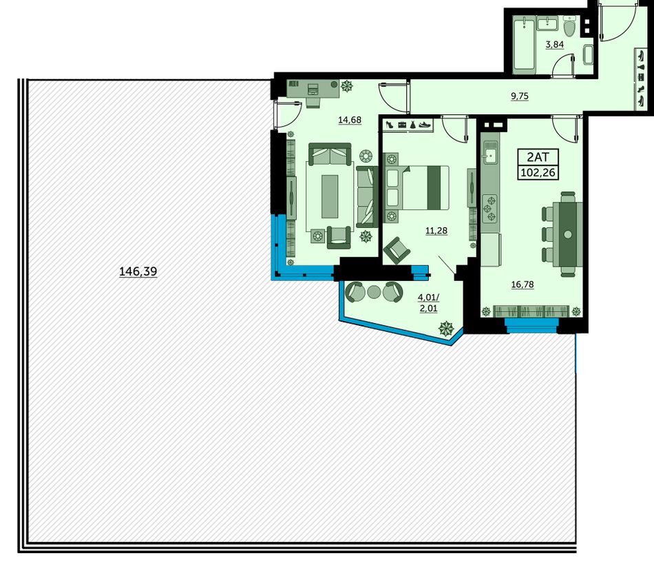 2-комнатная — 102,26 м² 2/25 эт. в Сердце Ростова 2