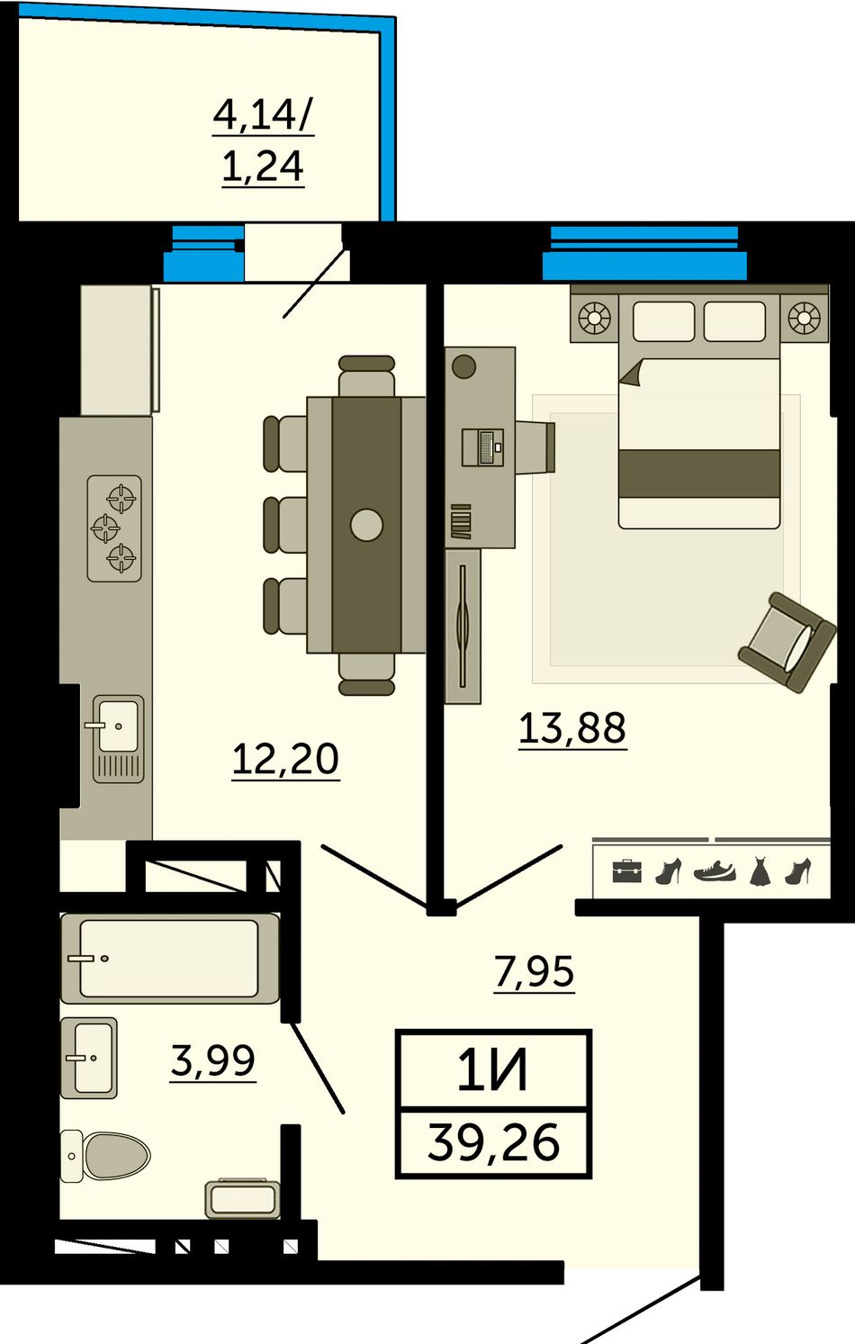 Общая площадь39,2 м²