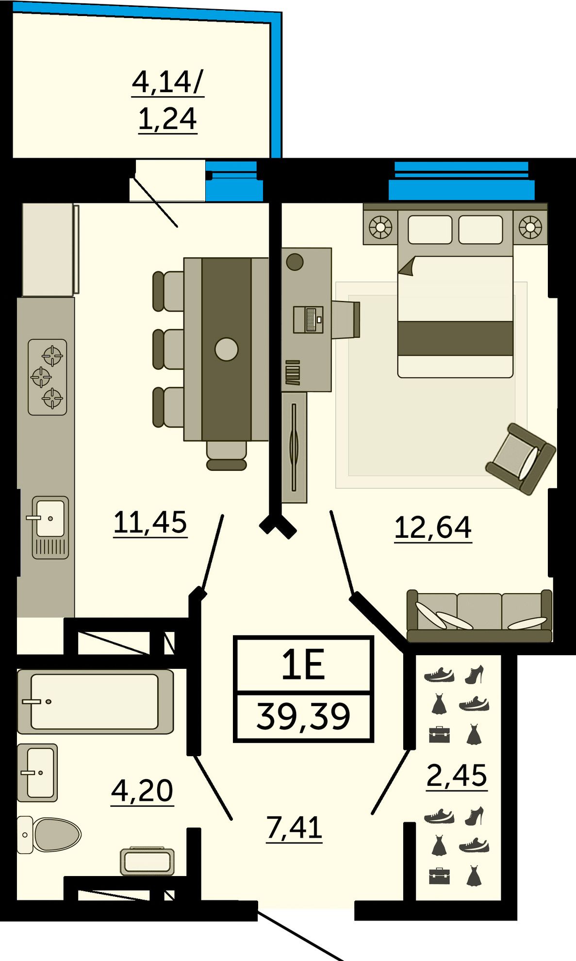 Общая площадь39,3 м²