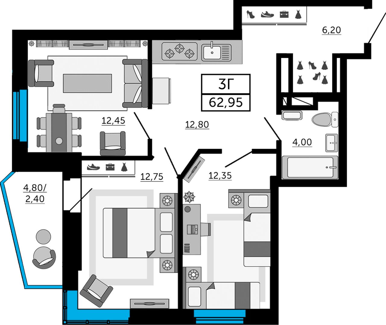 | 3-комн. | 63 - 86 м² | 8,2 - 10,4 млн ₽ |