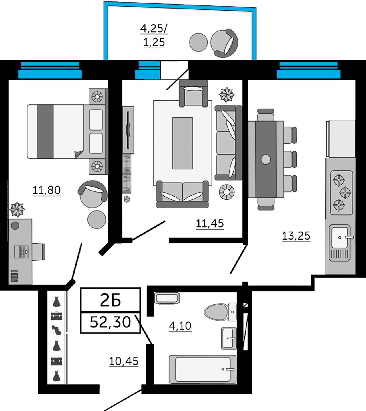 | 1-комн. | 40 - 43 м² | 6,5 - 6,7 млн ₽ |