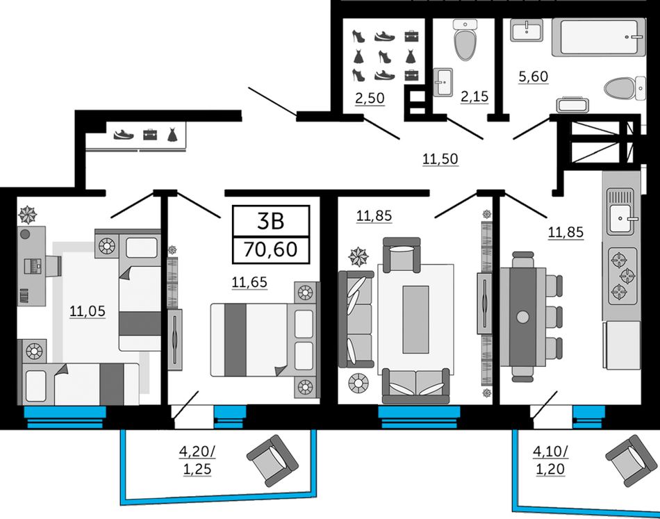 | 3-комн. | 60 - 72 м² | 7,7 - 9,2 млн ₽ |