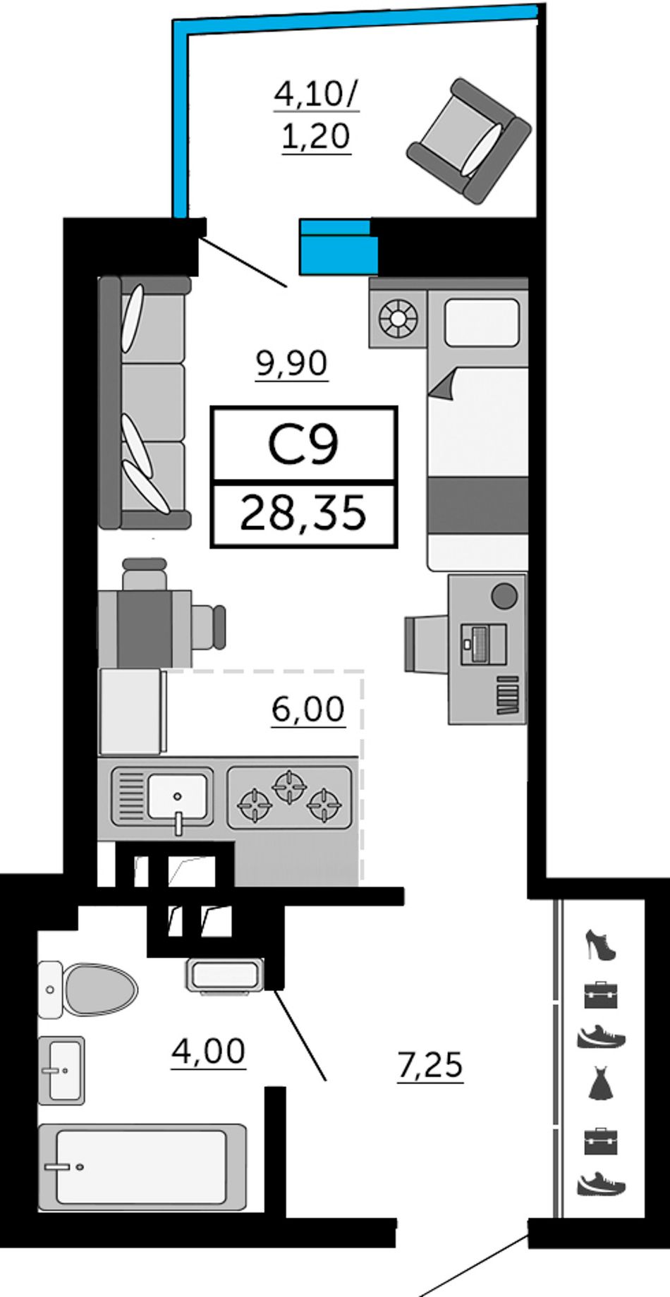Общая площадь28,05 м²