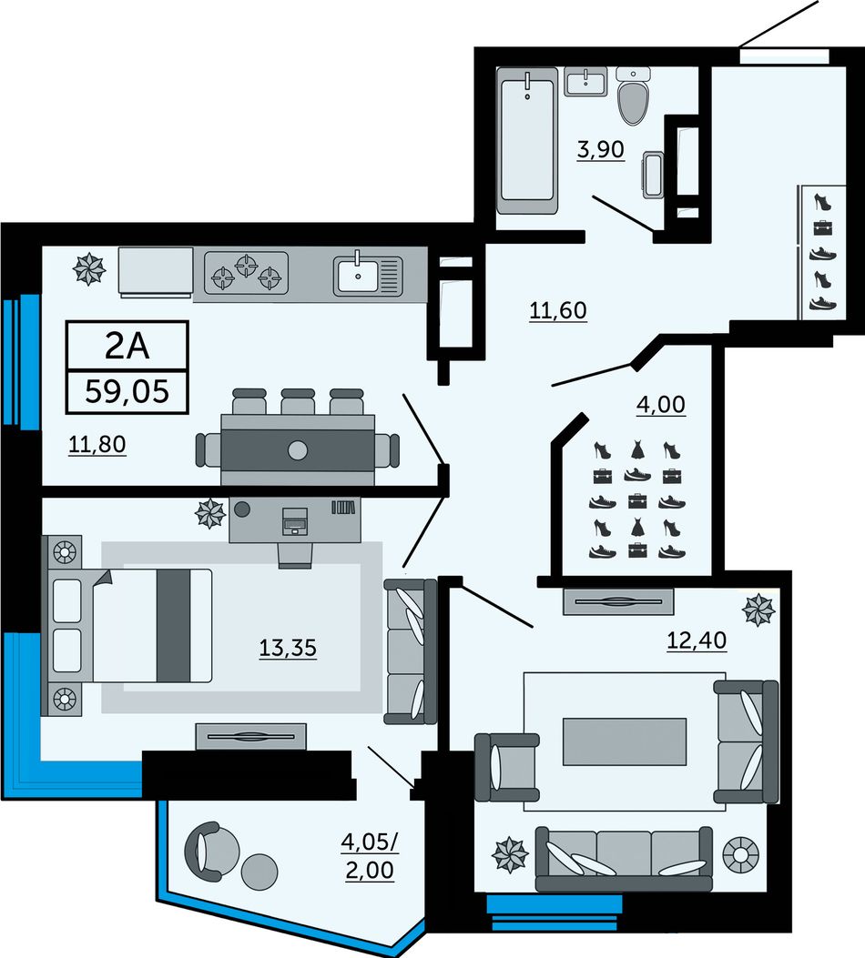 Общая площадь59,05 м²