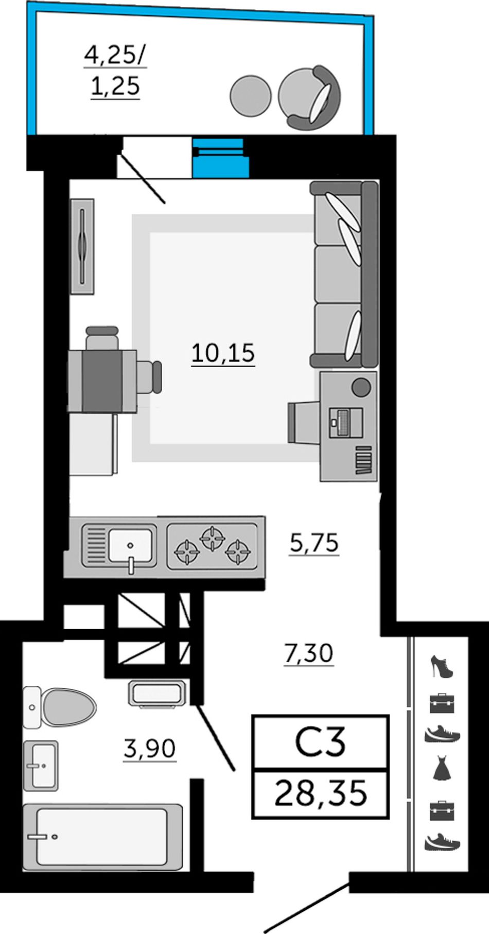 | Студия | 24 - 29 м² | 4,2 - 5,1 млн ₽ |