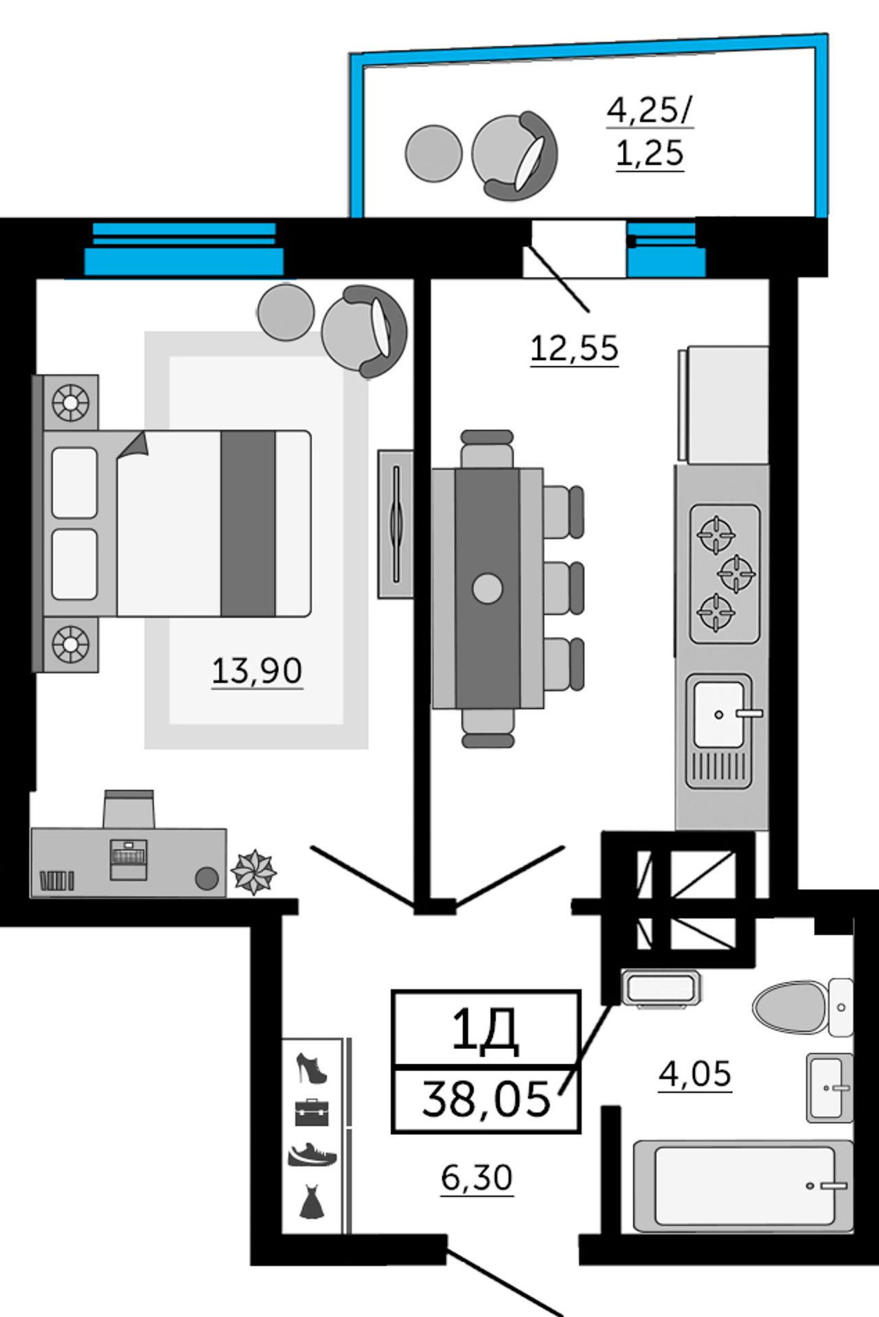 | 1-комн. | 39 - 42 м² | 4,2 - 6,4 млн ₽ |