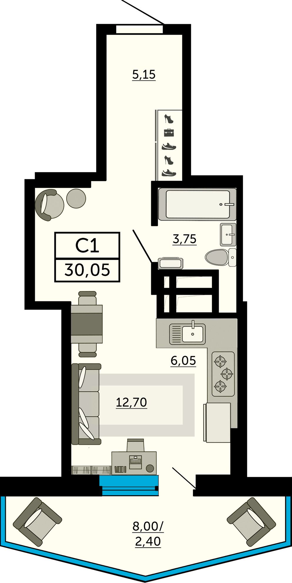 Общая площадь30,05 м²