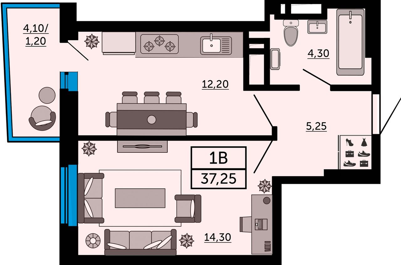 Общая площадь37,25 м²