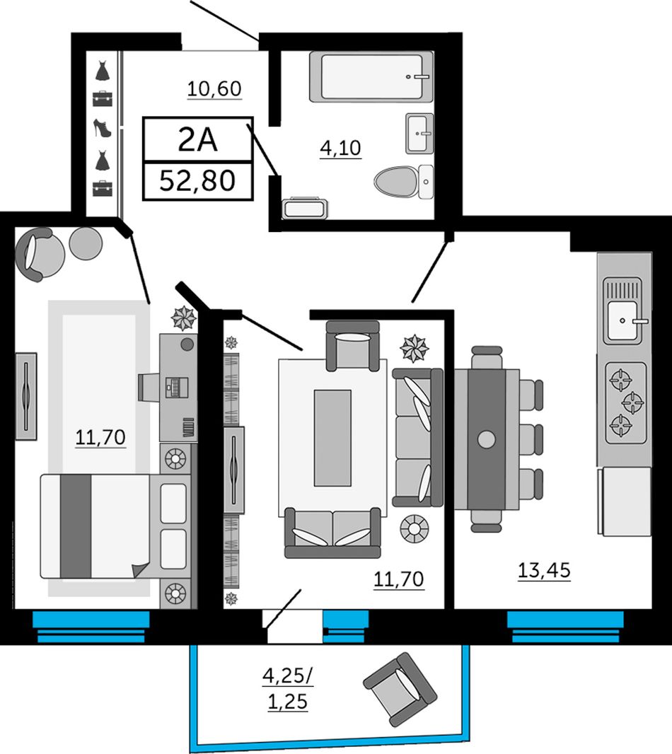 | 1-комн. | 39 - 42 м² | 4,2 - 6,4 млн ₽ |