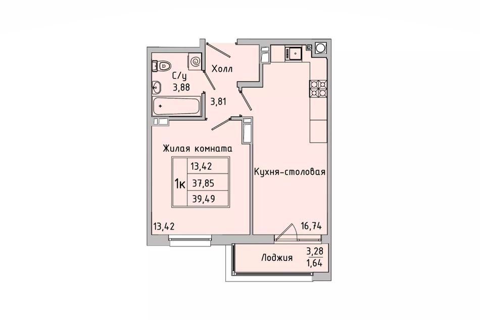 1-комнатная — 37,9 м² 5/7 эт. в Пальмира 2.0